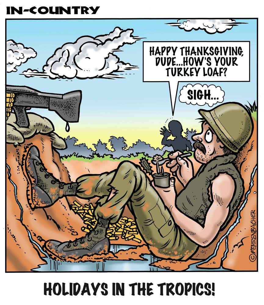 Phil enlisted in the Army in 1965 where you served for years in Vietnam. He became a graphic designer and has worked for the state of Oregon for 26 years. He retired in 2003 and started the Cartoon "In-Country". The cartoons reflect his experiences during his tour of duty in South Vietnam.