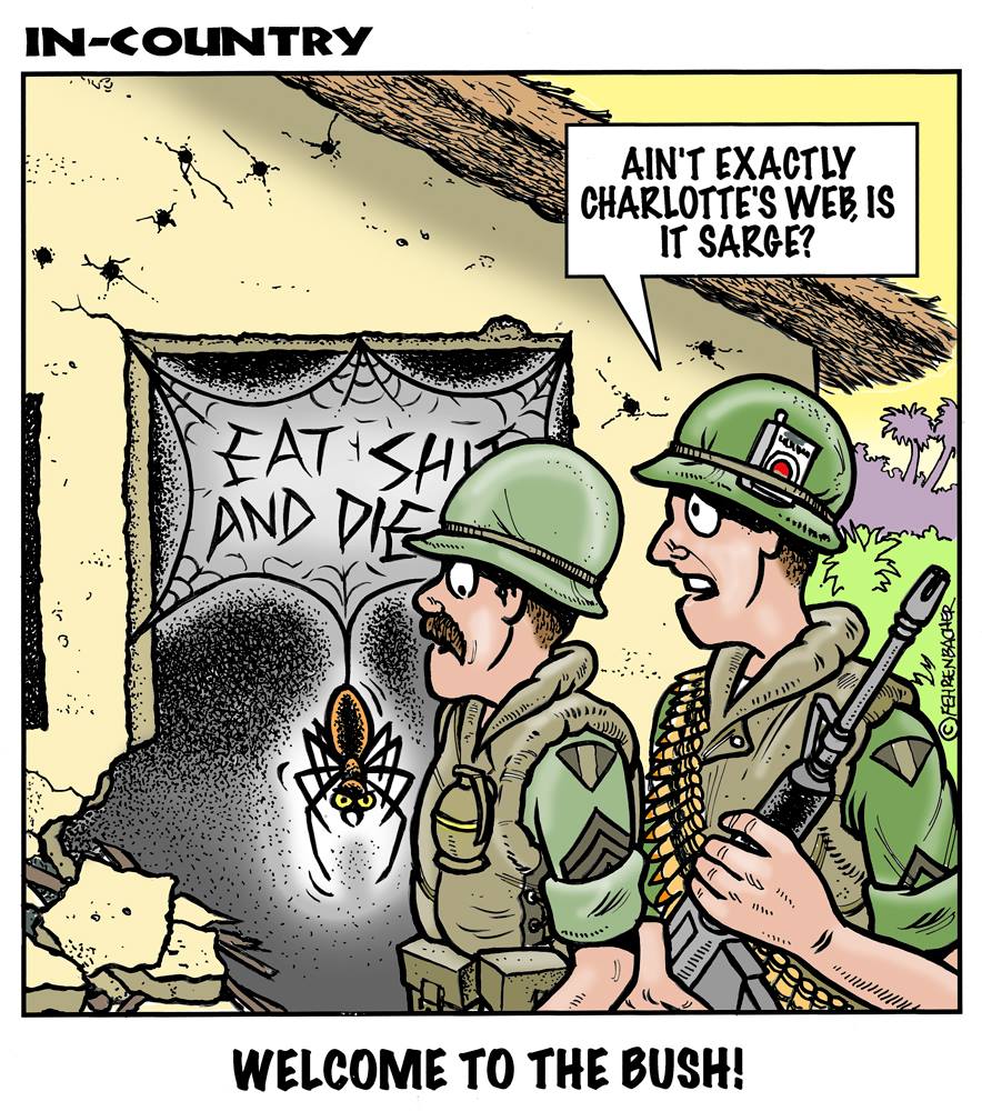 Phil enlisted in the Army in 1965 where you served for years in Vietnam. He became a graphic designer and has worked for the state of Oregon for 26 years. He retired in 2003 and started the Cartoon "In-Country". The cartoons reflect his experiences during his tour of duty in South Vietnam.